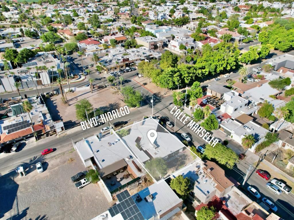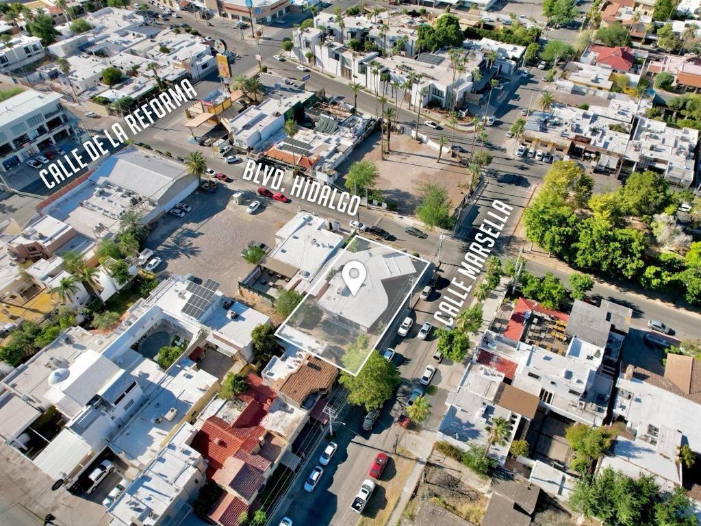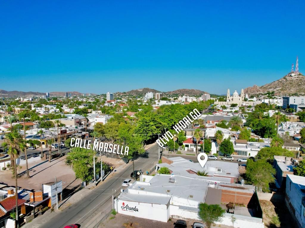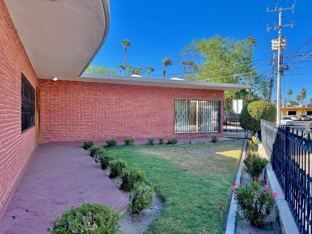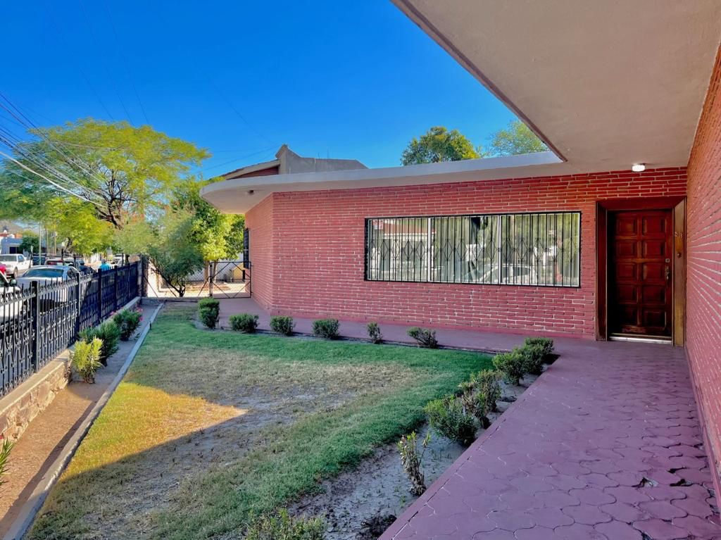 Convenientemente situada sobre el Blvd. Hidalgo esquina con calle Marsella, casa de una planta, con amplio patio, terraza y jardín.