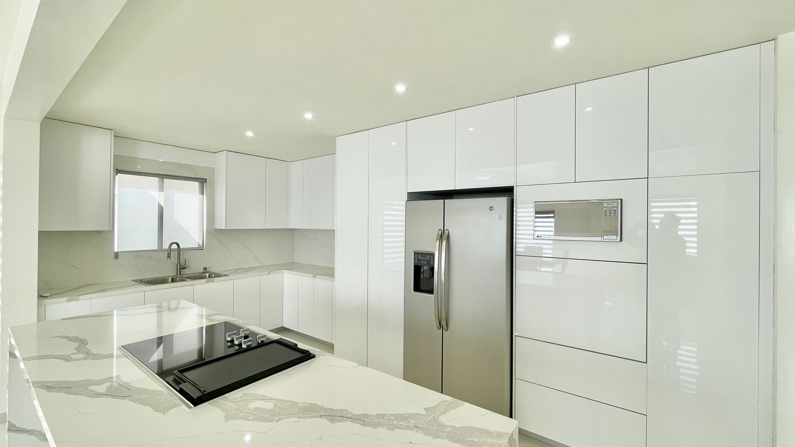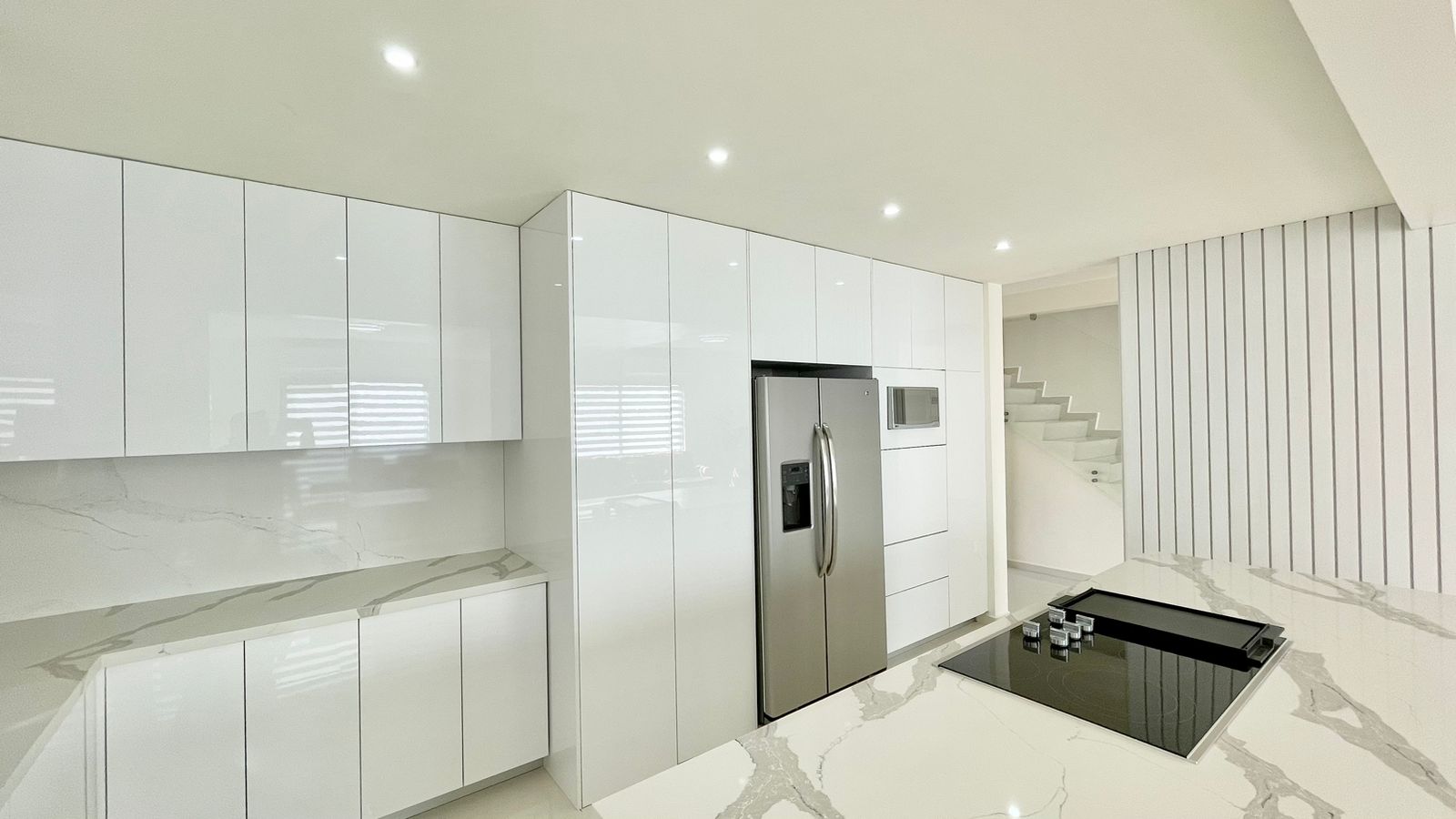 Convenientemente súper equipada y amueblada, nueva para estrenar, con 3 recámaras (cada una con baño completo independiente) y un amplio patio.