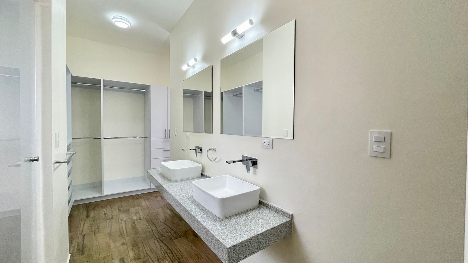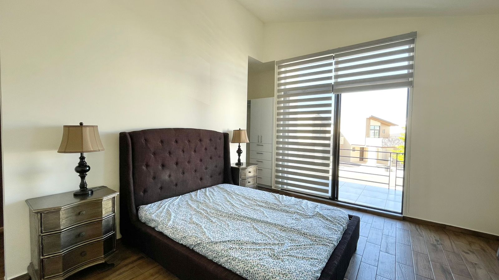 Amplia recámara principal con terraza, baño, lavamanos doble y un amplio vestidor, estancia, 2 recámaras de visitas cada una con su closet y baño completo.