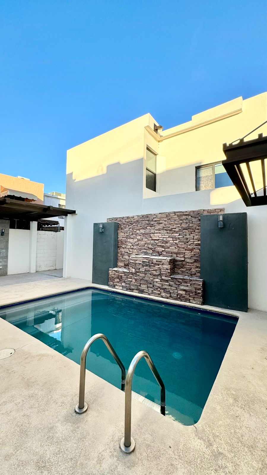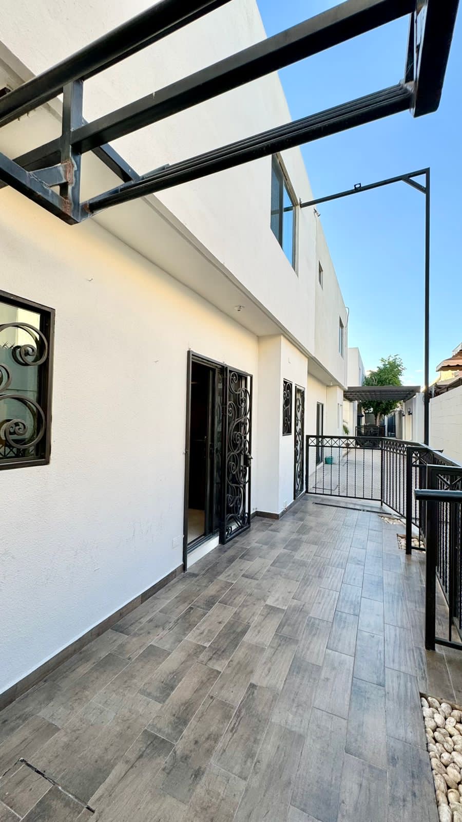 CASA EN RENTA en Los Portales Residencial, súper amueblada y equipada. Planta Baja Sala, comedor, cocina integral con granito, closet-alacena, medio baño, lavandería, cochera techada para dos vehículos, patio. Planta Alta Recámara principal con vestidor y baño propio, 2 recámaras con closets, Terraza, Estancia y 1 baño completo Equipamiento: •Hidroneumático •Cisterna •Cámaras de vigilancia •Alarma •Persianas y cortinas en toda la casa. •Closet en recámaras y vestidor en recámara principal. •Refrigeracion tipo mini split y abanicos en toda la casa •Sala, refrigerador, estufa, campana, barra con bancos, electrodomésticos y recámaras. •Lavadora, secadora y boiler Cerrada con acceso controlado, vigilancia 24/7, dentro de una comunidad con alberca exclusiva para solo 6 casas. Renta mensual $25,000 incluye cuota de mantenimiento Se puede facturar