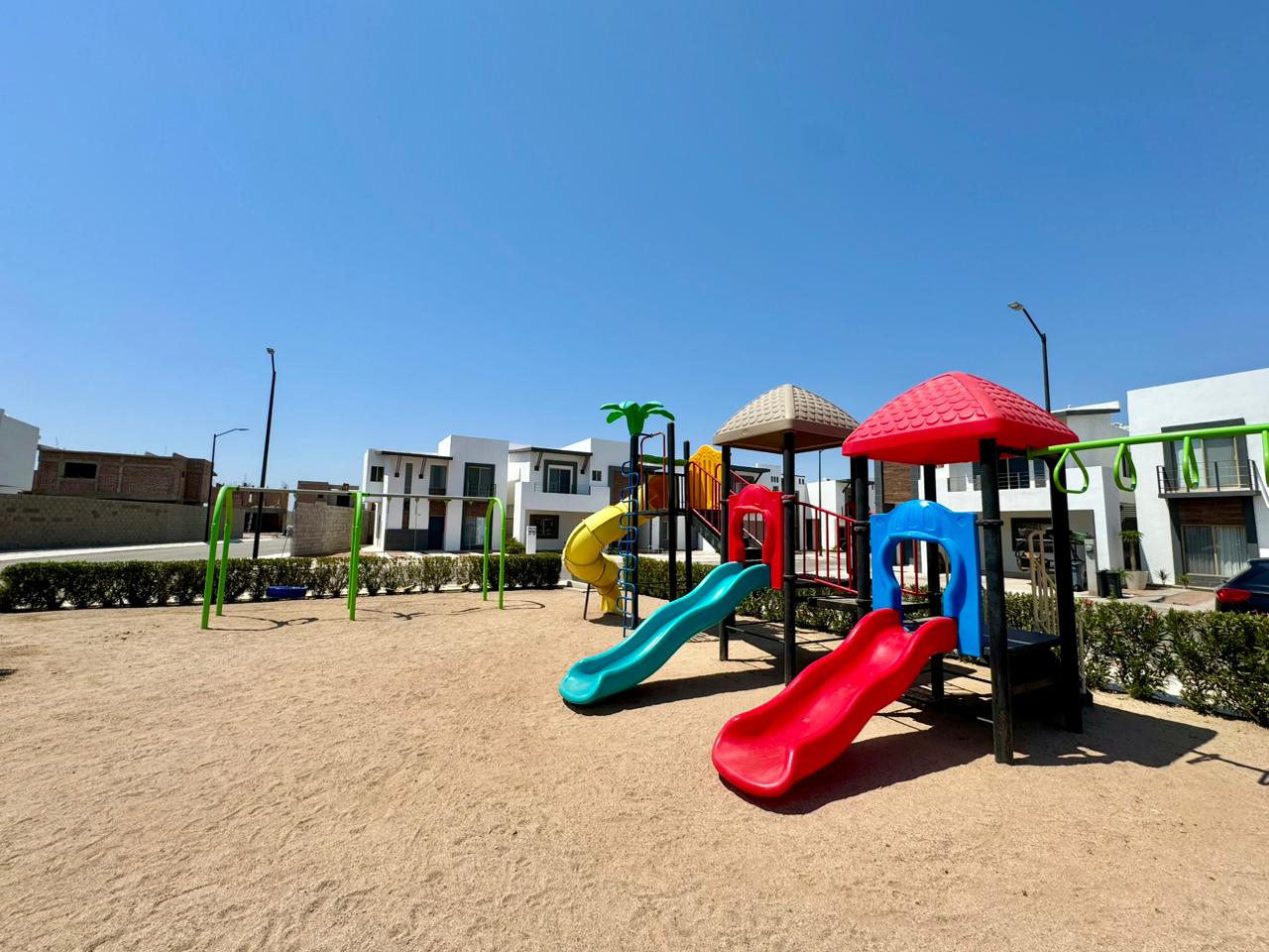 Residencial con acceso controlado, seguridad 24/7, área de juegos infantiles y alberca.