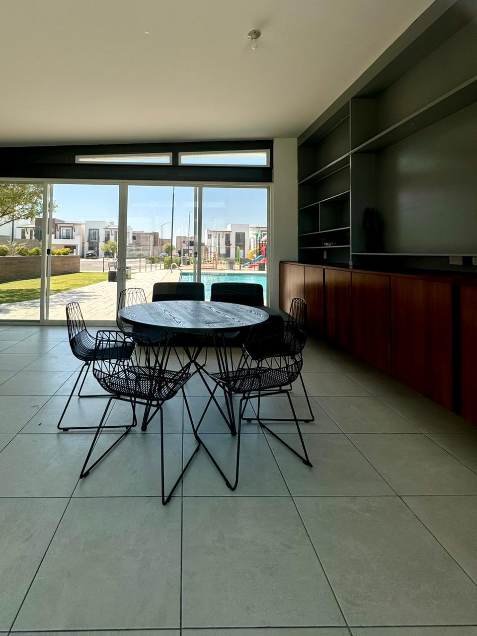Sala, comedor, cocina, área de lavandería, medio baño, patio y cochera para dos autos.