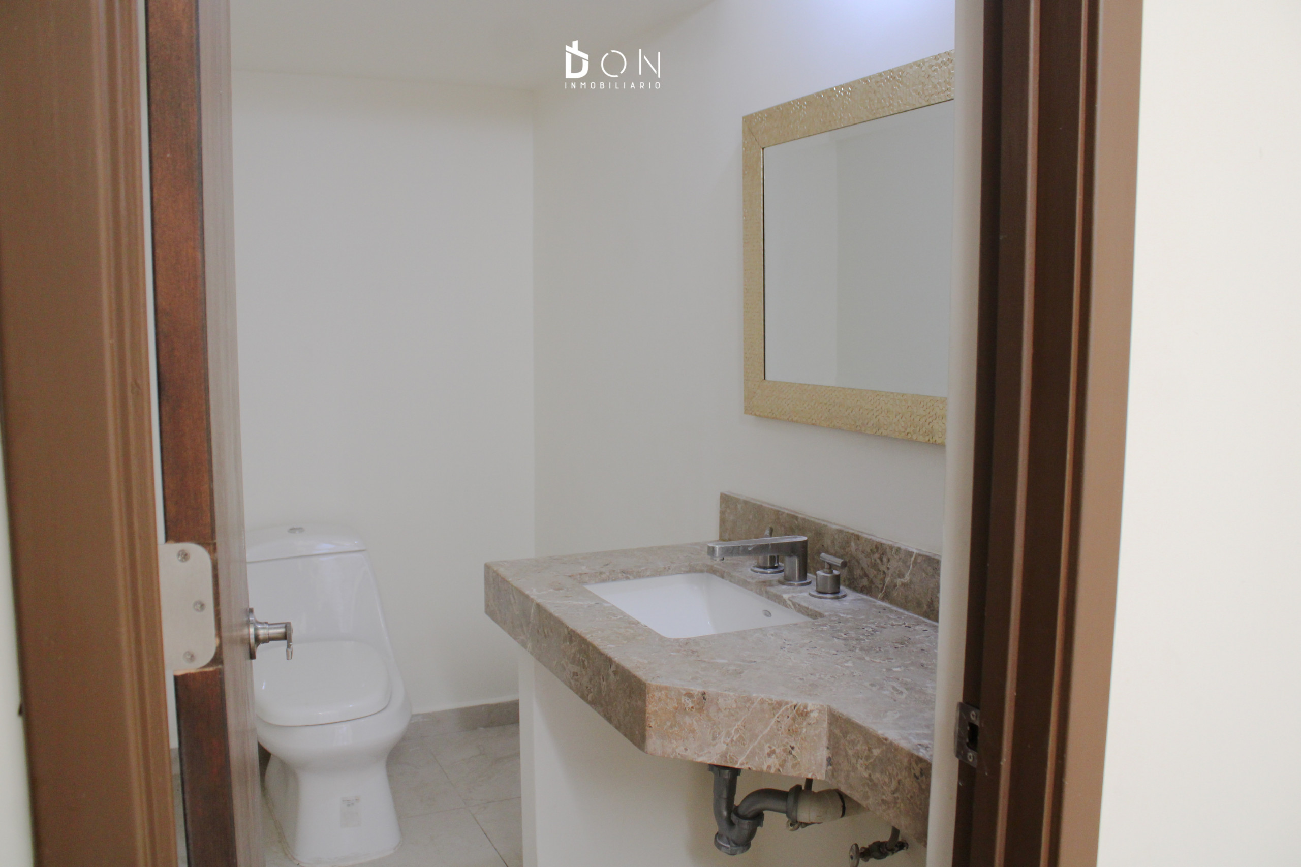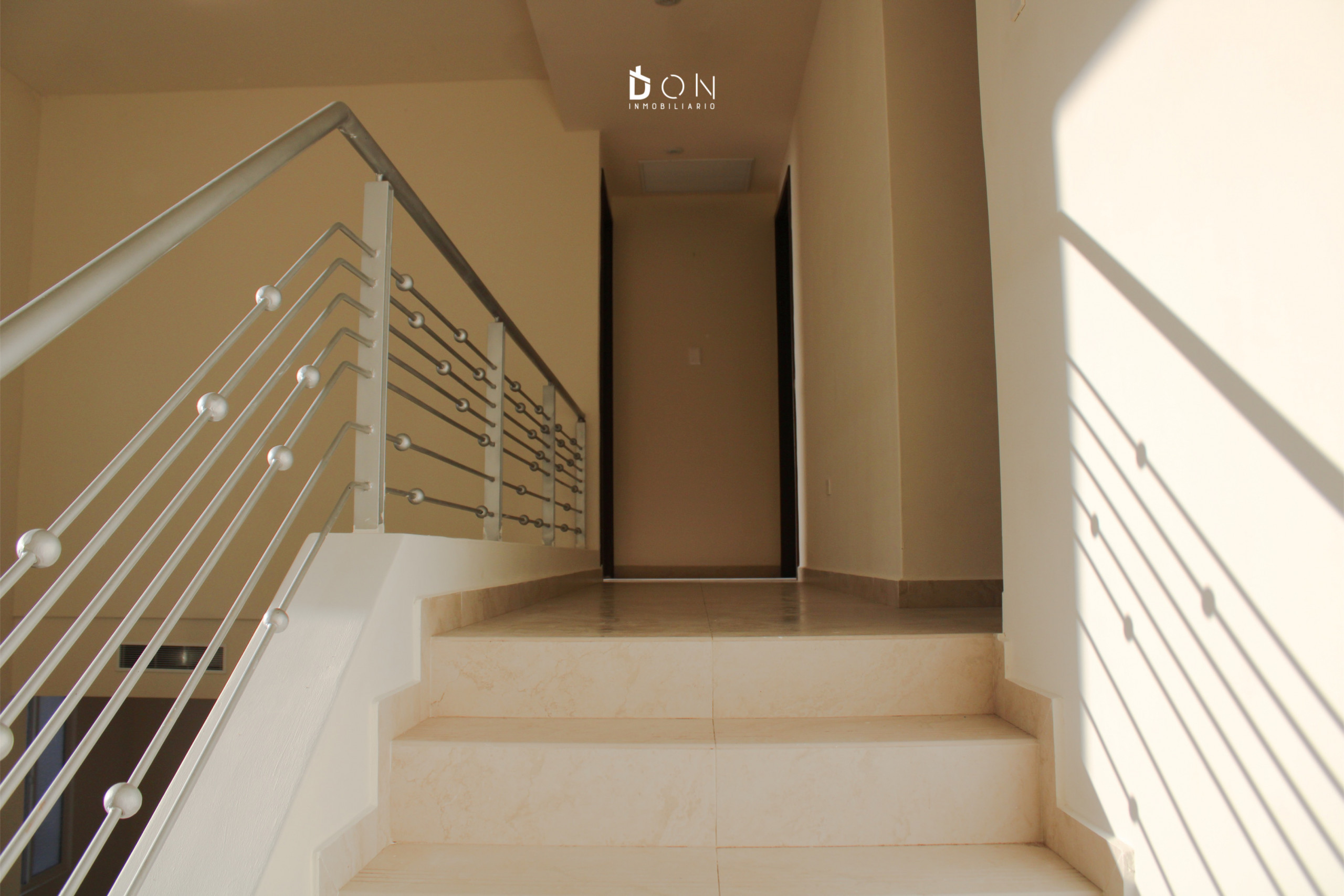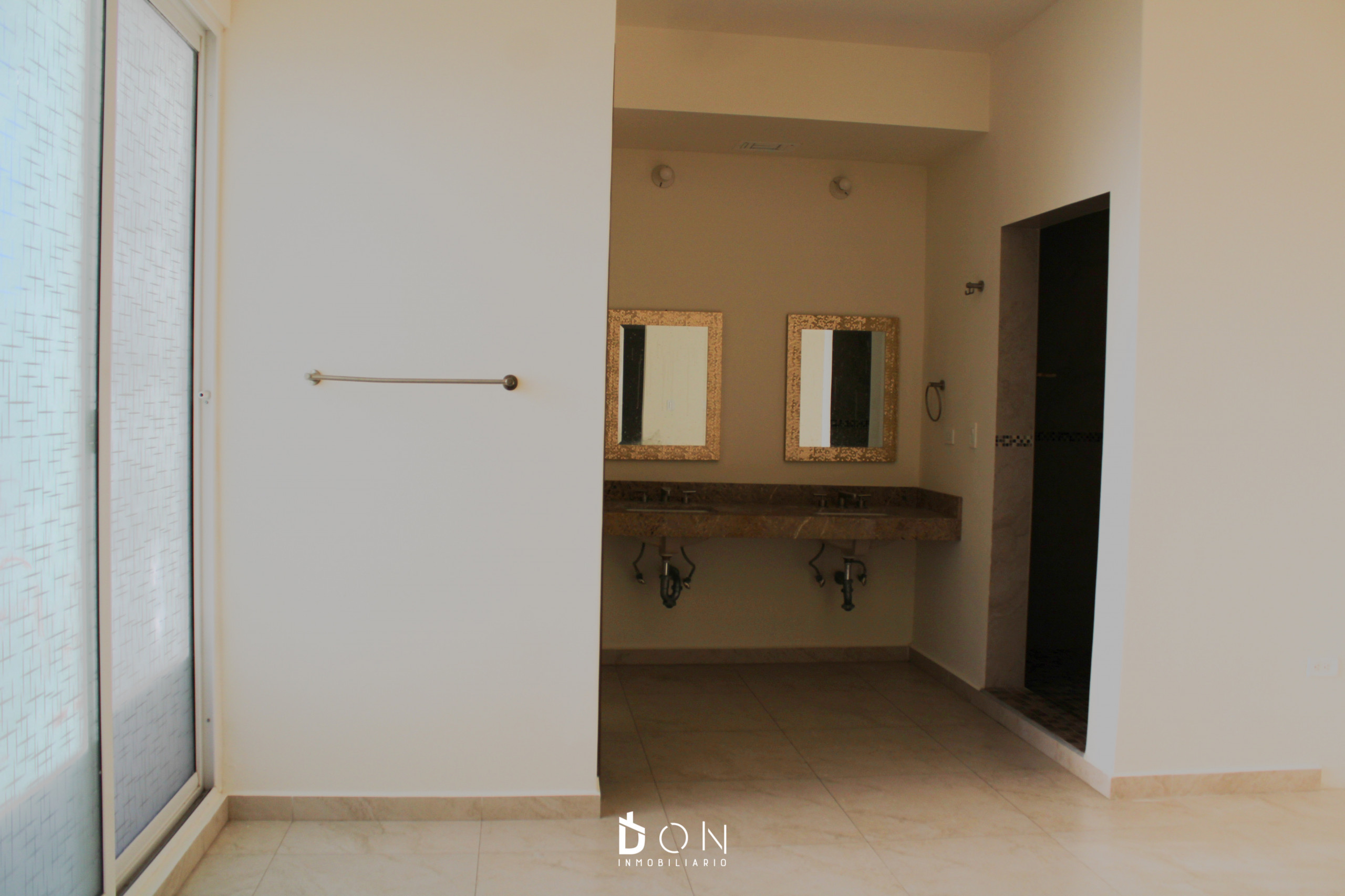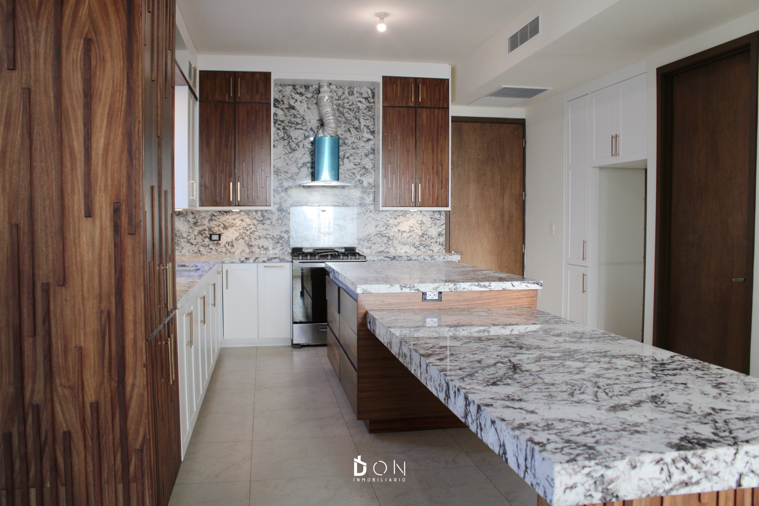 Cocina con barra de granito e isla, estufa y campana, piso rectificado en toda la casa, tres refrigeraciones tipo mini split, boiler, tanque de gas estacionario, rejas perimetrales de protección.