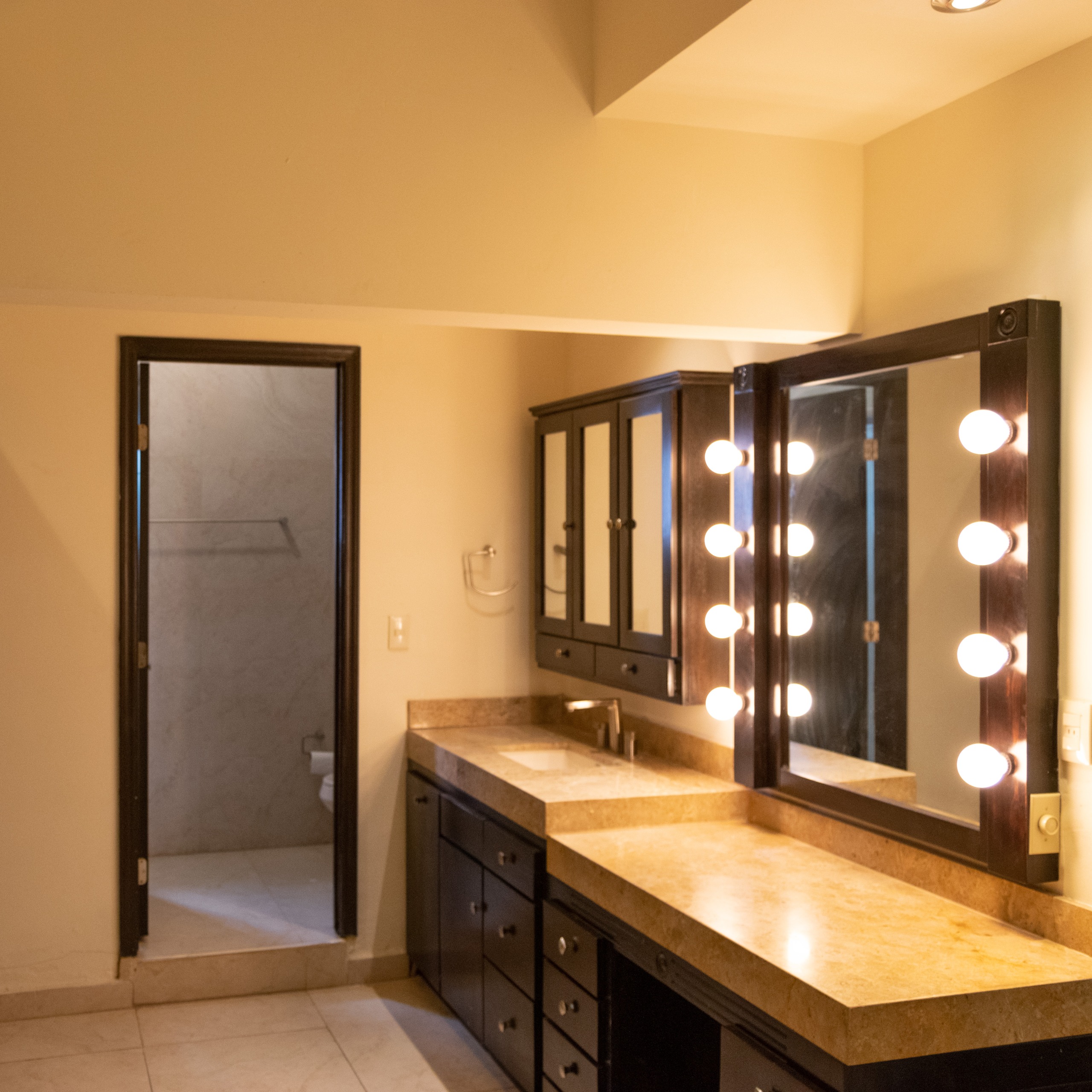 Recámara con walking clóset, tocador vanity y baño completo