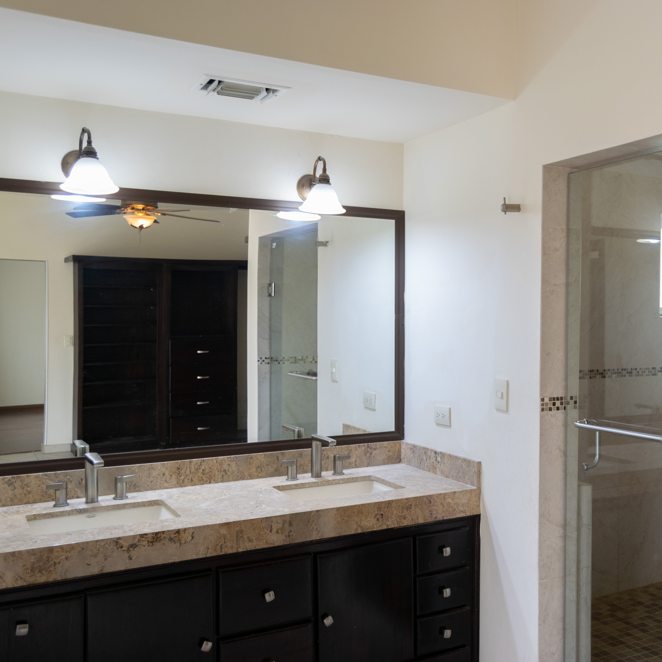 Baño completo con doble lavabo