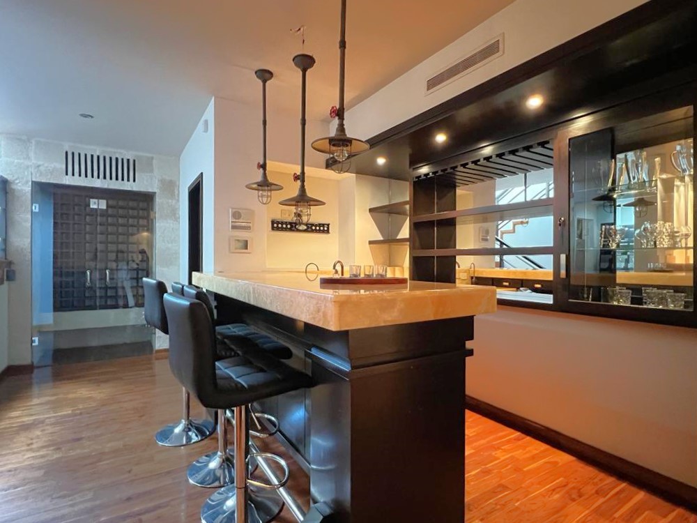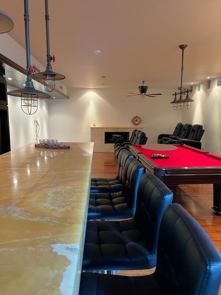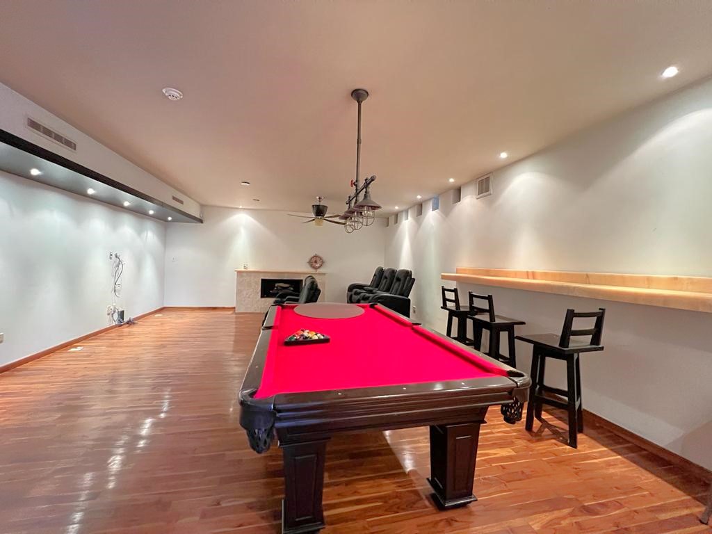 En el sótano cuenta con un gran salón de juegos equipado con bar, mesa de billar, área de cine privado y 1/2 baño.
