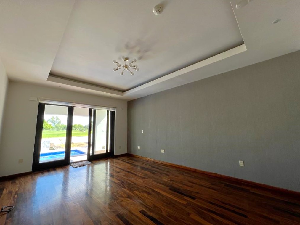 Residencia en venta en Los Lagos Club Campestre Casa súper equipada de dos plantas, con salón de juegos en sótano, alberca y una espectacular vista al Campo de Golf. En la planta baja cuenta con jardín frontal, recibidor con triple altura, sala, comedor, cocina moderna y súper equipada, 1/2 baño de visitas, 1 recámara principal con baño y walk in clóset y 1 recámara con baño completo, área de lavandería, cuarto de servicio con baño completo, cochera con puerta eléctrica para 4 autos, un gran patio en la parte posterior con alberca, terraza, asador y acceso al campo de golf. En el segundo piso cuenta con una estancia, 2 recámaras con baño completo y walk in clóset cada una de ellas. En el sótano cuenta con un gran salón de juegos equipado con bar, mesa de billar, área de cine privado y 1/2 baño. Terreno 628 m2 Construcción 655 m2 Precio de venta $22,900,000