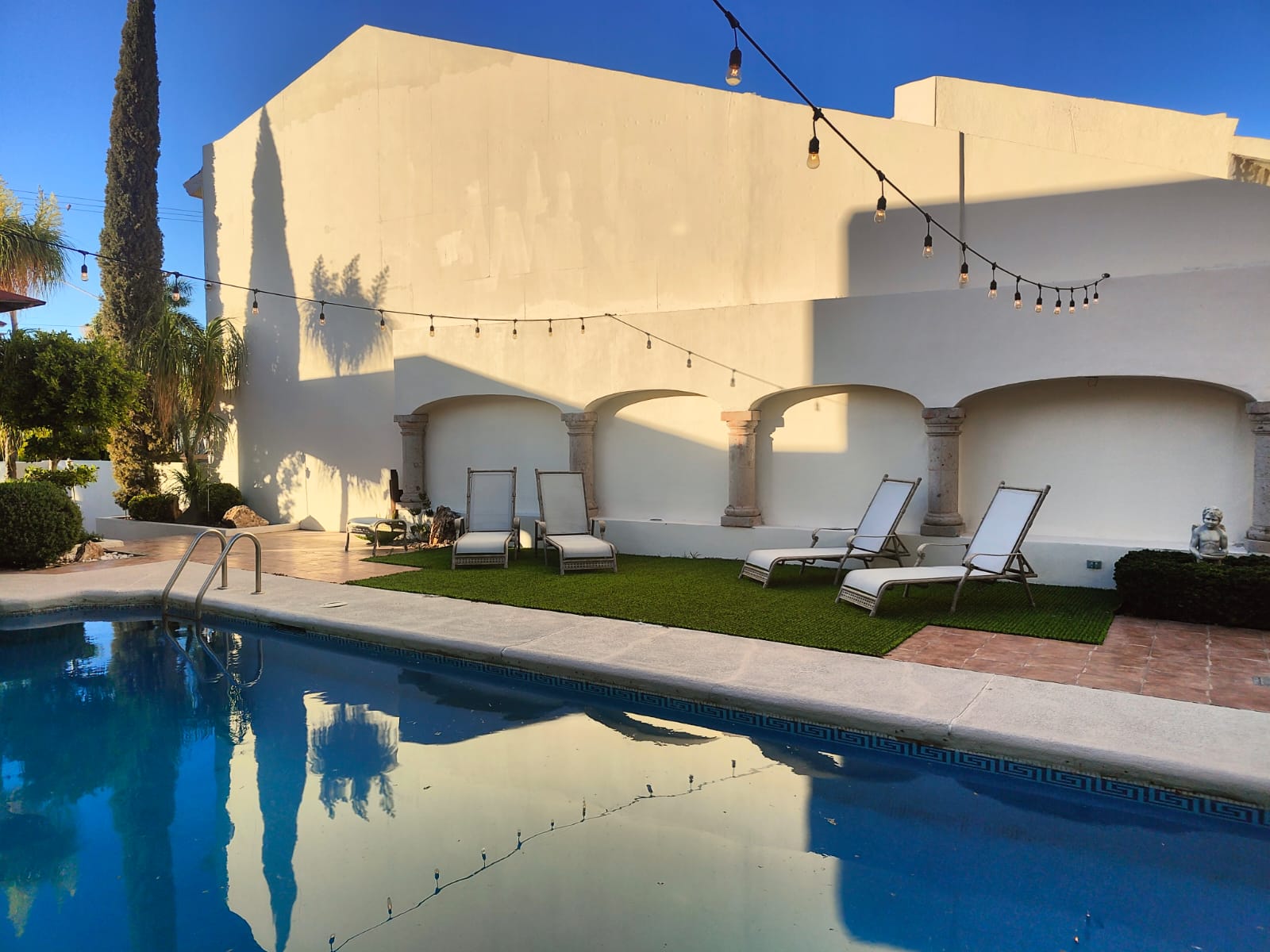 Cuenta con Alberca, Asador y terraza para dos departamentos.