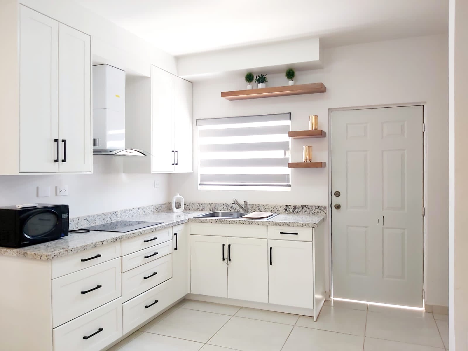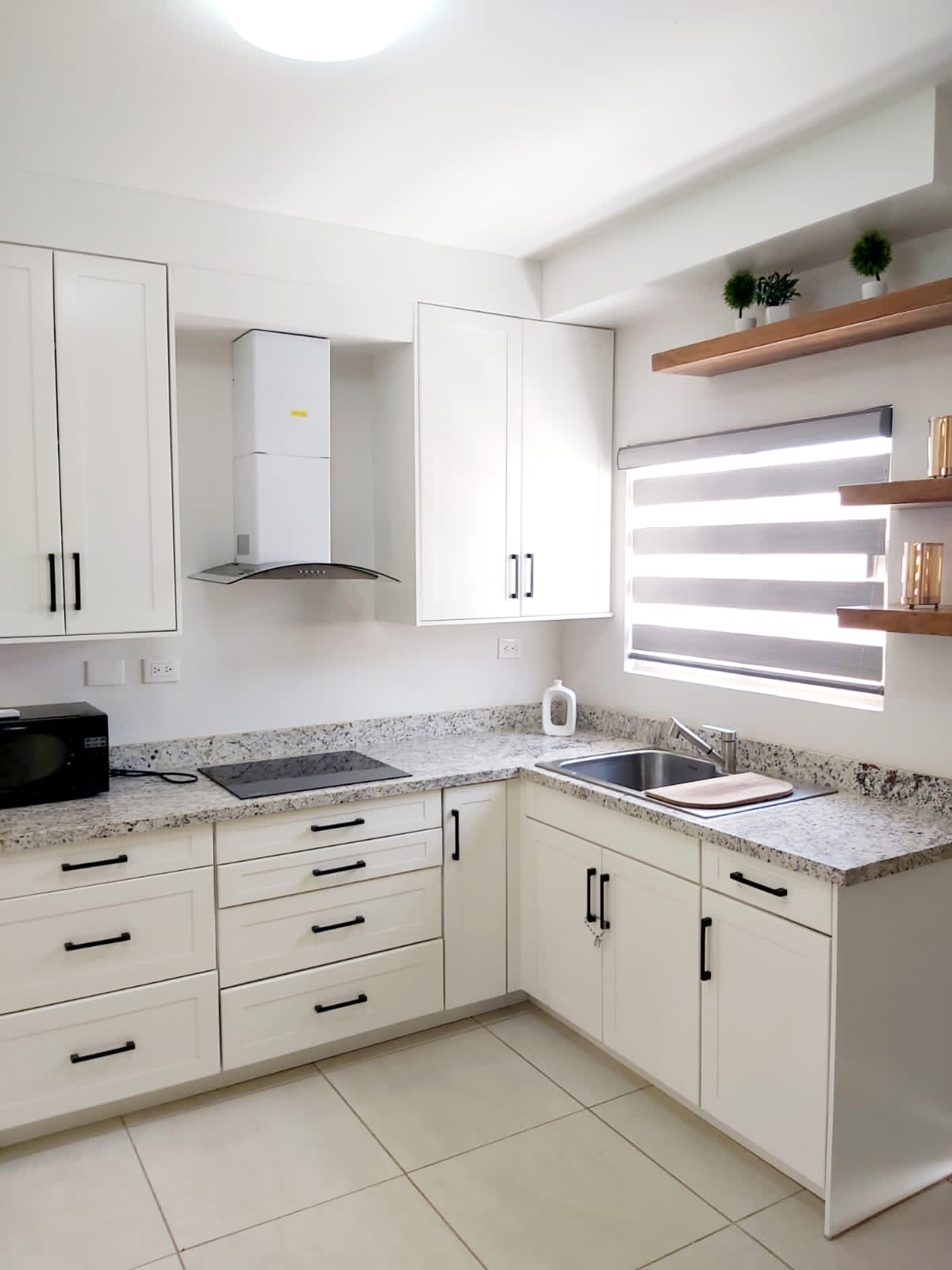 🔺Sala, comedor, cocina con cubierta de granito, placa eléctrica y campana, medio baño.