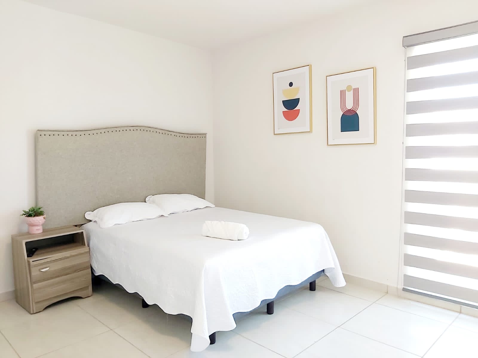 🔺2 Recámaras, cada recámara cuenta con closet, lámparas, Queen Size, detalles de iluminación, 1 pantalla Tv.