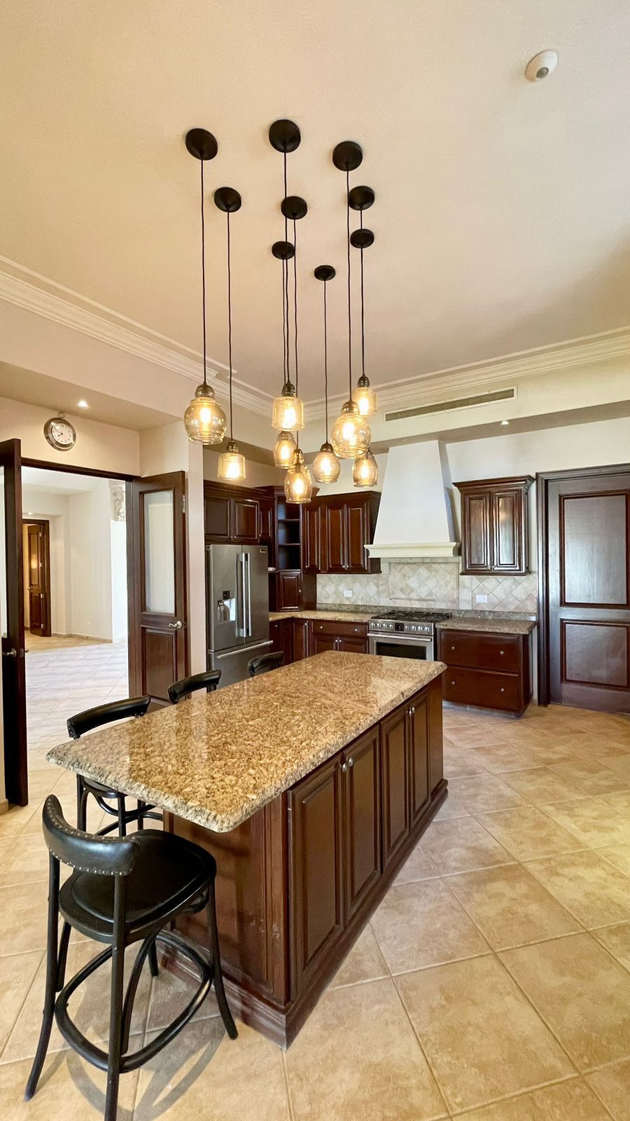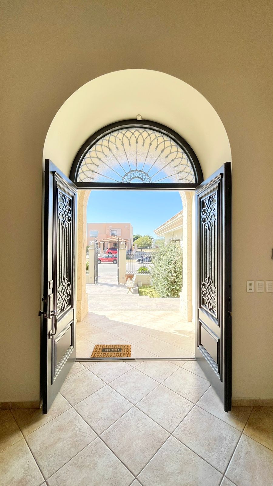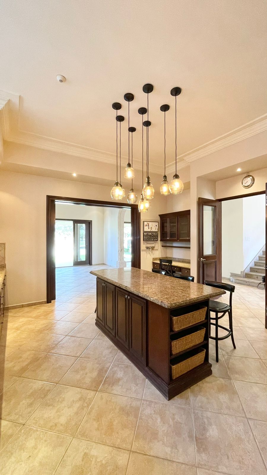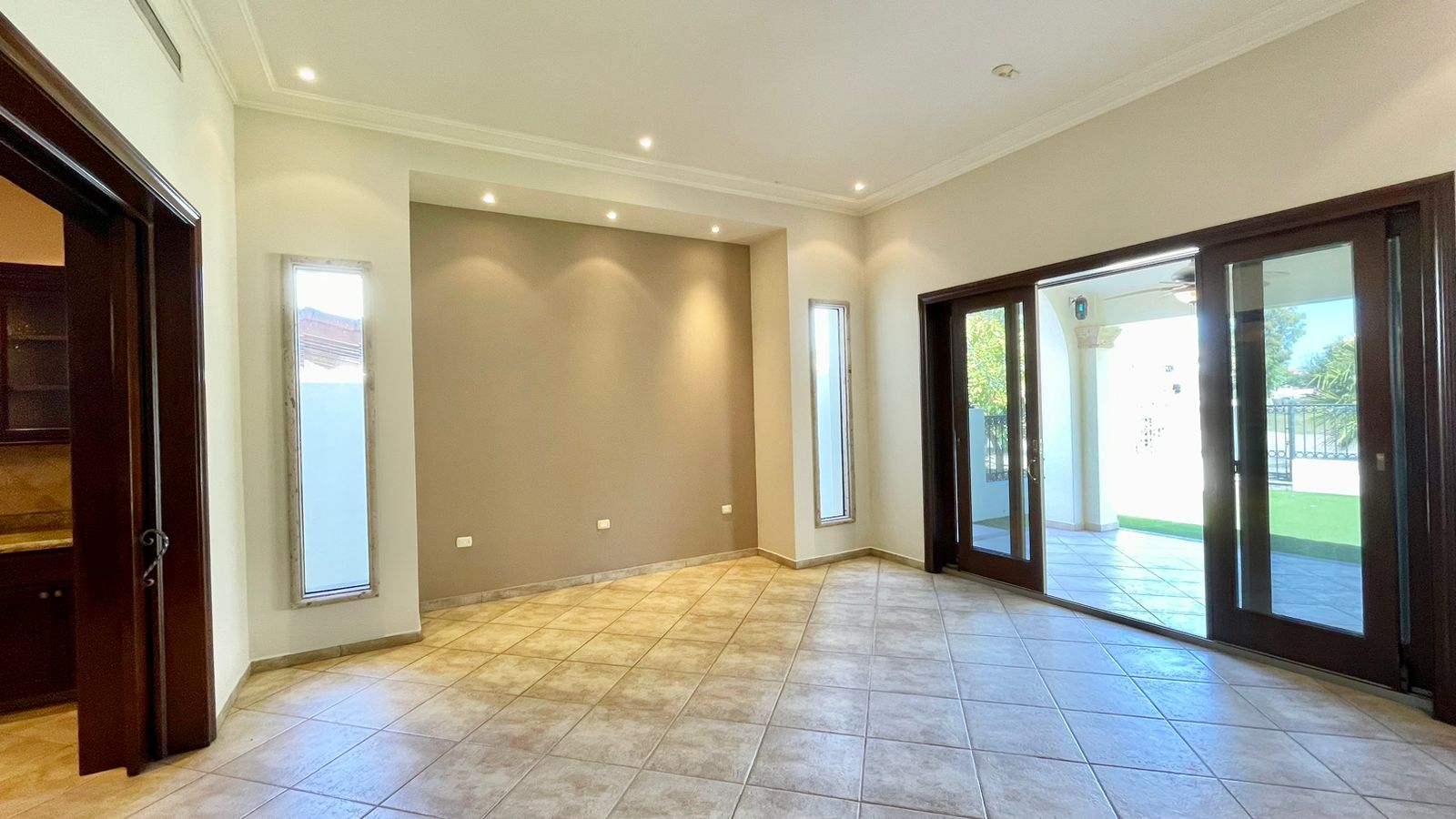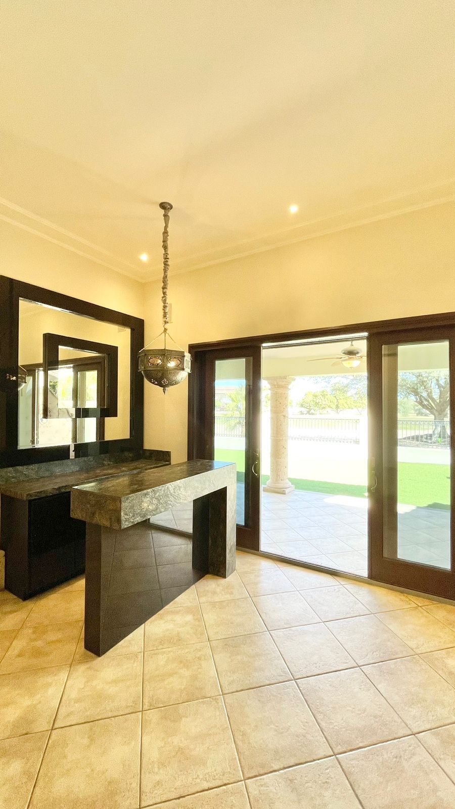 Cuenta con un amplio Jardín frontal, Recibidor, Oficina, Sala con chimenea, Comedor, Cocina, 3 recámaras con baño y walking clóset cada uno de ellas, Estancia, 1/2 baño de visitas dentro de la casa y otro 1/2 baño en patio, lavandería, cuarto de servicio con baño completo, cochera techada y un gran patio en la parte posterior con acceso al campo de golf.